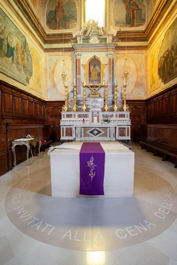 Bronzetto chiaro con scritte intarsiate in Biancone di Apricena